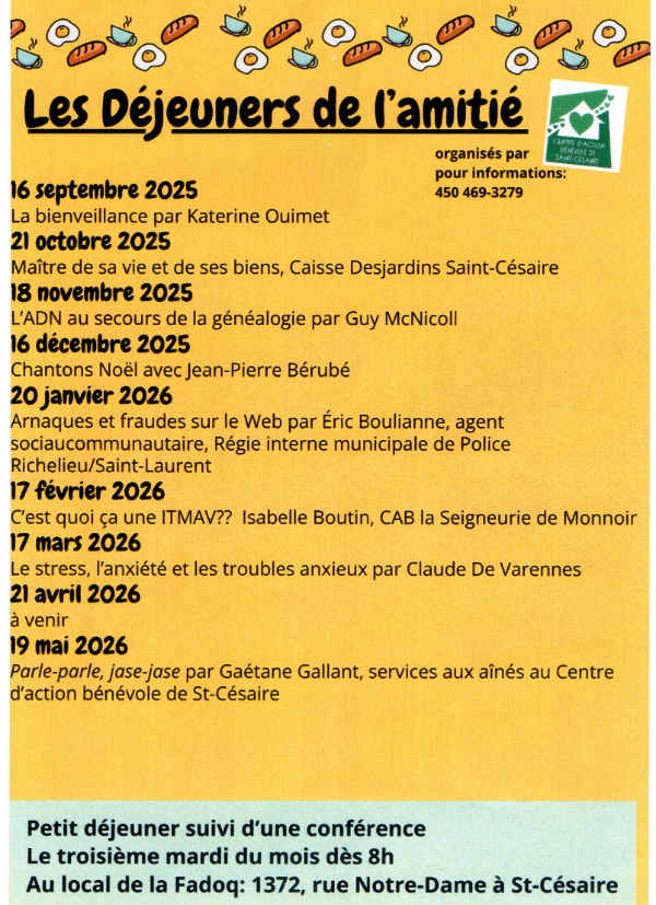 Bienvenue sur notre site du Club FADOQ ST-CÉSAIRE ( M013 )