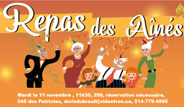 Si vous désirez être des nôtres, réservez par courriel : dorisdubreuil@videotron.ca ou par téléphone au 450-339-3150 avant le 19 avril.