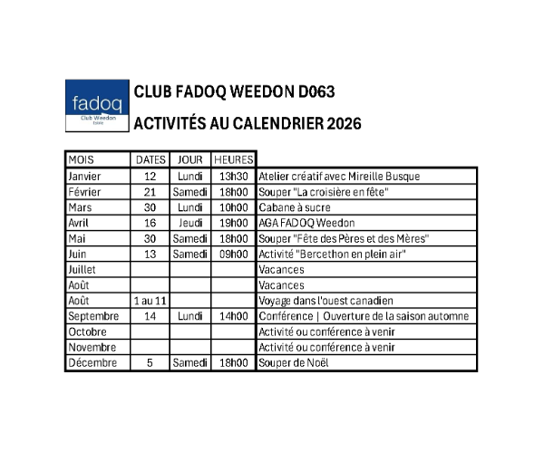 Club FADOQ Weedon