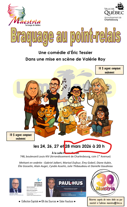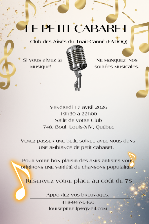 Les places étant limitées, réservez tôt auprès de Hélène Legros au 581-909-9065